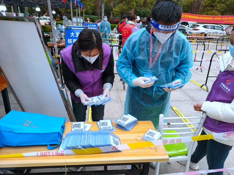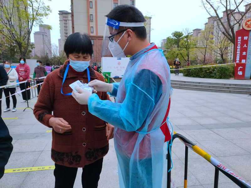 連續(xù)3天的志愿服務(wù)后,為進一步優(yōu)化方式、提升效率,志愿者們利用1天短暫休息時間,收集所有手機中錄入形成的核酸檢測碼并分別打印制作成胸牌,于翌日分發(fā)至每位老人手中,有效減少了老人等待時間較長、人員易聚集等現(xiàn)象,從源頭上解決問題,讓“綠色通道”更加暢通,讓參加核酸檢測的老人體會到更加貼心、更高效率的志愿服務(wù)。