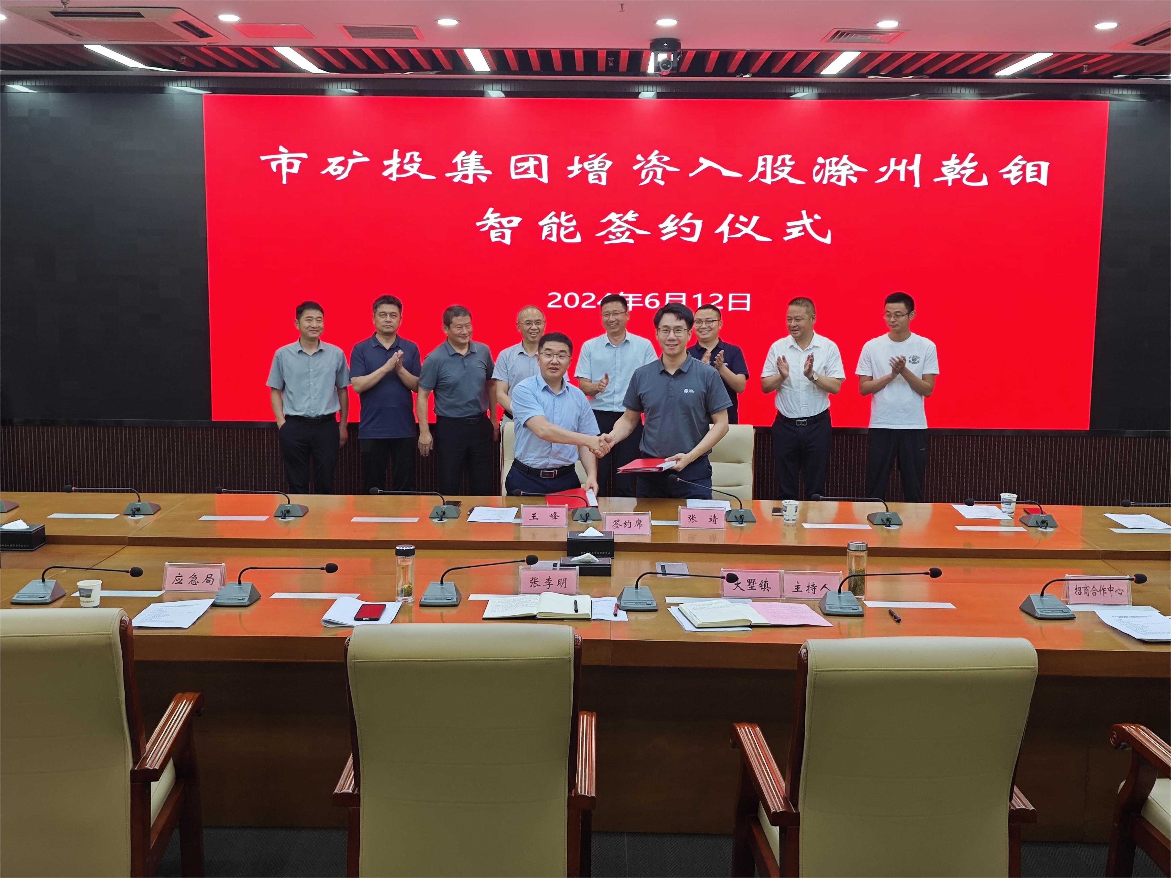 6月12日下午,市礦投集團增資入股滁州乾鉬智能制造有限責(zé)任公司簽約儀式在全椒縣政府舉行。市礦投集團黨委書記、董事長王峰,黨委委員、紀(jì)檢組長芮金保,全椒縣副縣長張李明出席儀式并講話,全椒縣應(yīng)急局、縣企業(yè)服務(wù)中心、縣招商合作中心、大墅鎮(zhèn)等主要負(fù)責(zé)同志參加本次簽約儀式。