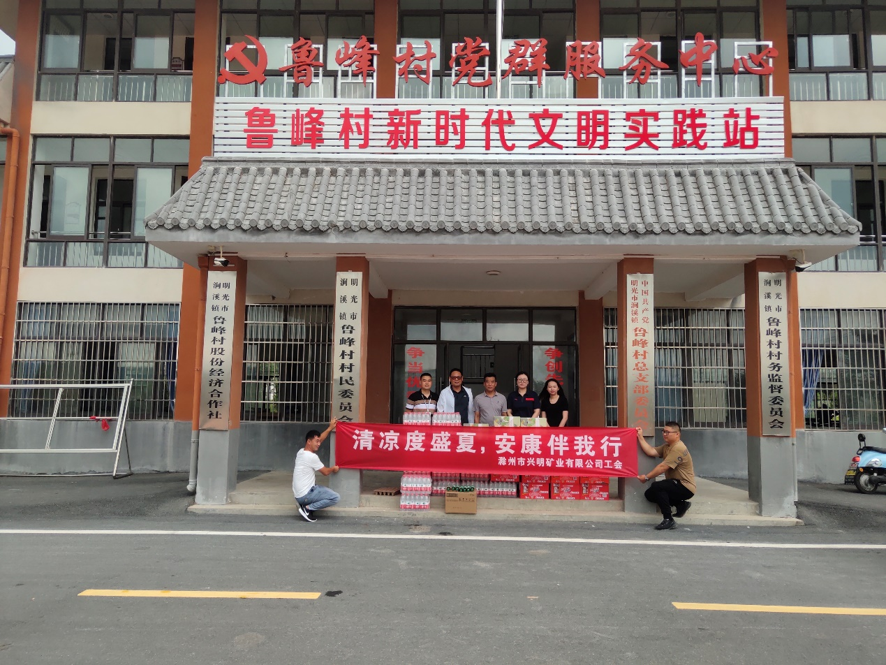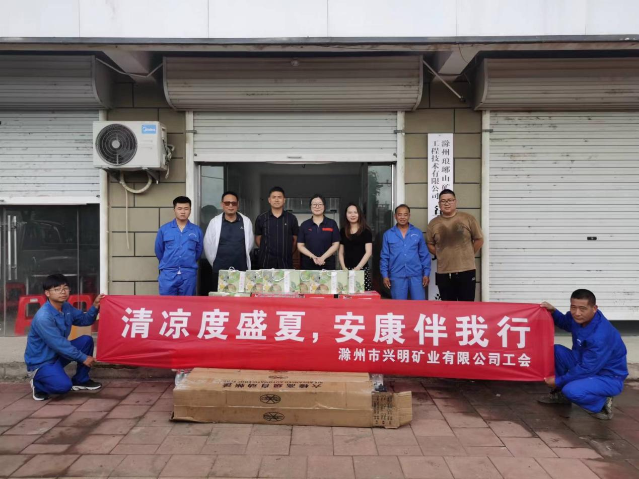 連日來的高溫天氣對奮戰(zhàn)在一線的職工是極大的“烤”驗(yàn)。7月6日,為表達(dá)對堅(jiān)持工作在一線人員的關(guān)心關(guān)懷,興明礦業(yè)工會(huì)組織開展“夏送清涼”慰問活動(dòng),向明光市澗溪鎮(zhèn)魯峰村村委會(huì)、滁州瑯琊山礦業(yè)工程技術(shù)有限公司及本公司一線職工送去礦泉水、綠茶、花露水、遮陽傘等防暑物品,為戰(zhàn)高溫、斗酷暑的職工送去絲絲涼意。