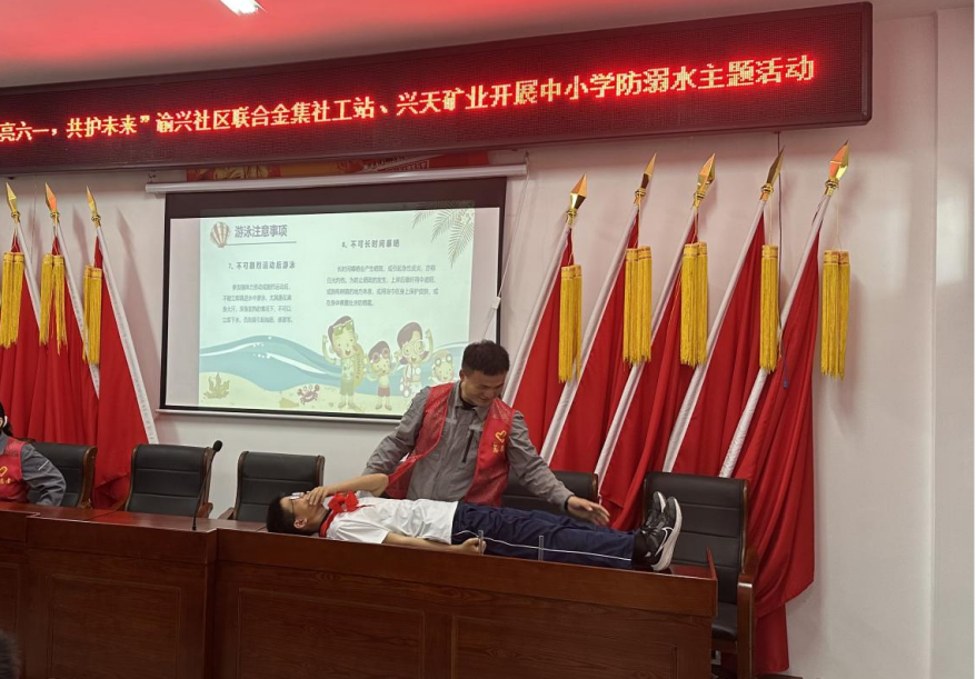 活動現(xiàn)場,興天礦業(yè)志愿者通過發(fā)放防溺水知識手冊、播放防溺水科普視頻以及演示心肺復(fù)蘇等方式科普了基本防溺水及救護(hù)常識,有效提高在場學(xué)生防溺水意識。